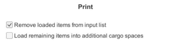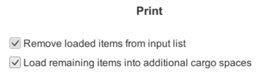 If you want to load the remaining items in another type of cargo space, please uncheck the option “Load remaining items into additional cargo spaces” and only keep the first option checked “Remove loaded items from input list”. In the next step, you will be able to choose the cargo space best suited for your needs.